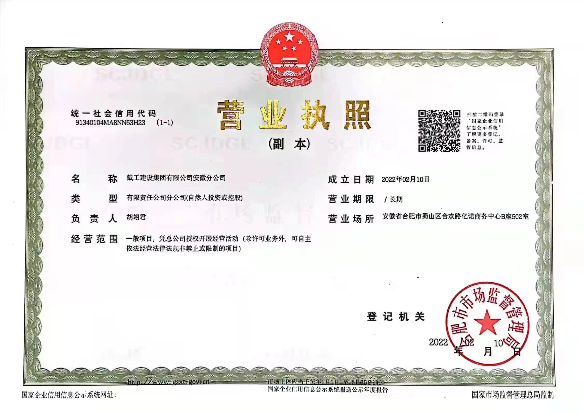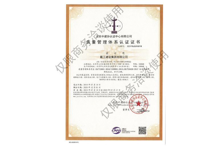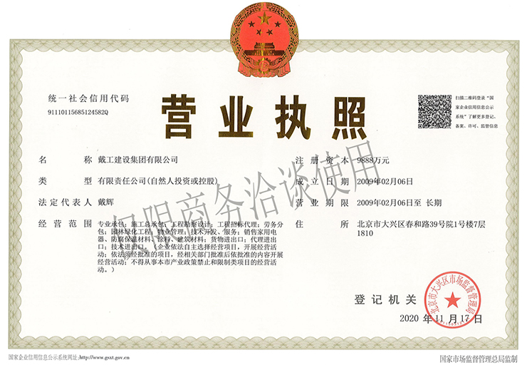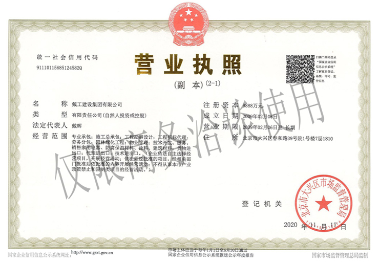 戴工建設(shè)集團(tuán)有限公司,創(chuàng)建于2009年,注冊(cè)資本9888萬(wàn)元人民幣。公司位于北京市大興區(qū)。具有建委頒發(fā)的建筑裝飾裝修專業(yè)壹級(jí),防水保溫工程專業(yè)壹級(jí),建筑幕墻專業(yè)貳級(jí),消防設(shè)施專業(yè)貳級(jí),電子與智能化專業(yè)貳級(jí),特種工程(結(jié)構(gòu)補(bǔ)強(qiáng))專業(yè)不分等級(jí),建筑機(jī)電安裝專業(yè)貳級(jí),環(huán)保工程專業(yè)貳級(jí),鋼結(jié)構(gòu)專業(yè)貳級(jí),建筑工程總承包貳級(jí),建筑裝飾工程設(shè)計(jì)專項(xiàng)甲級(jí),展覽陳列工程設(shè)計(jì)與施工壹級(jí),展覽展示工程壹級(jí)...更多>>